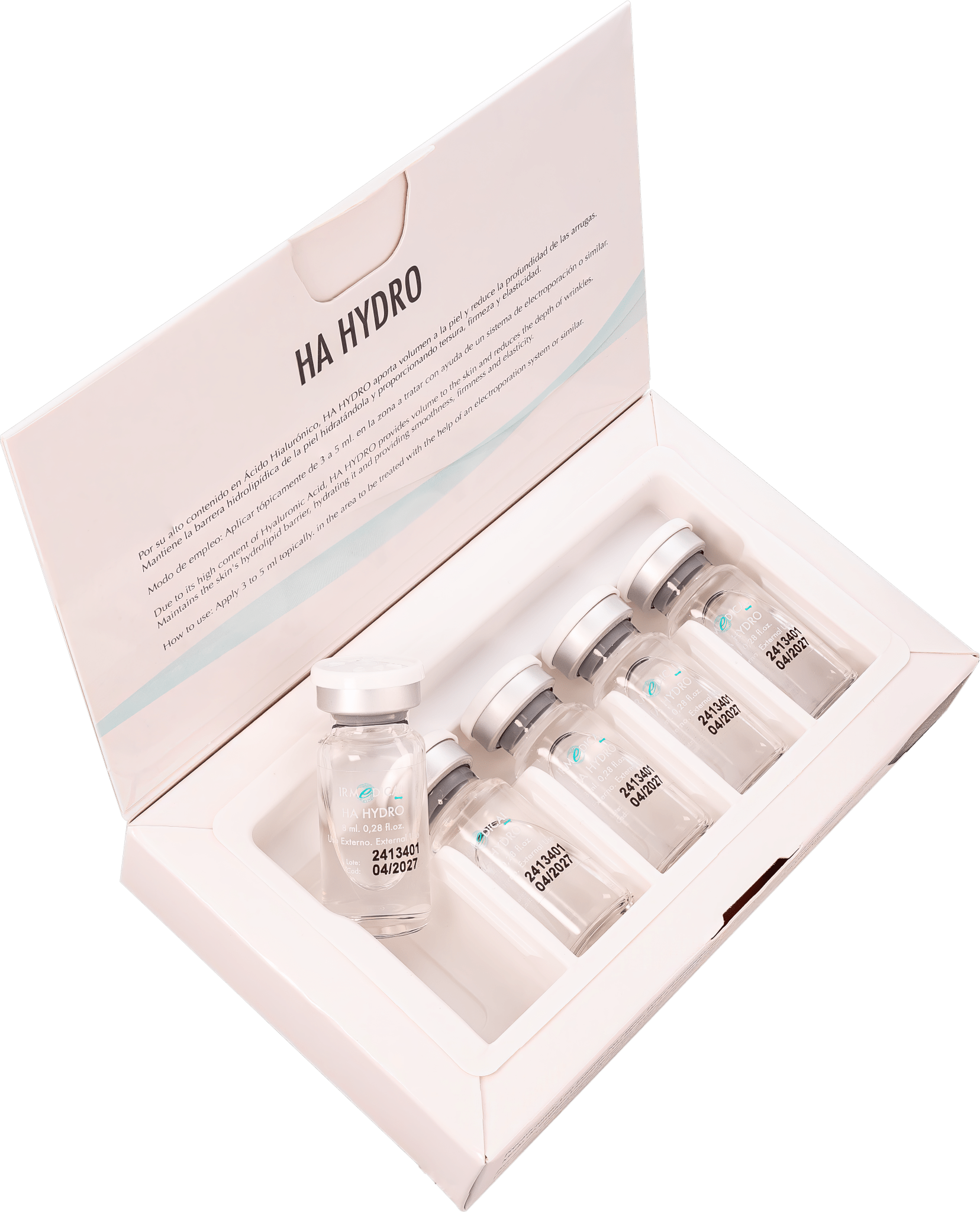 Ácido hialurónico no reticulado con una concentración de 18 mg/ml, diseñado para hidratar y rellenar arrugas. Es ideal para tratamientos faciales, así como para la hidratación de manos, codos y rodillas. Este ácido hialurónico de peso molecular medio tiene propiedades bacteriostáticas, antiinflamatorias, antioxidantes y antiedematosas, y además facilita la cicatrización de heridas. Con una concentración 18 veces superior a la habitual en cosmética (0,1%), se puede combinar con otros activos en diversos tratamientos. Incluye 5 viales de 8 ml.
