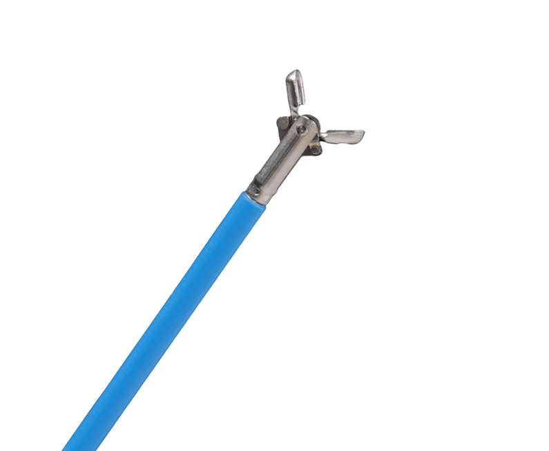 - Cabezal distal que termina en un fórceps de acero inoxidable.