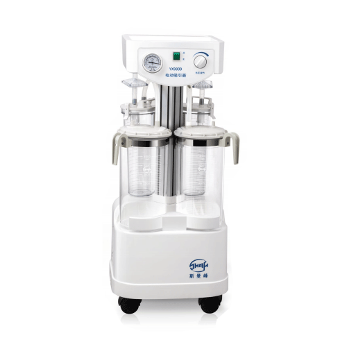 Aspirador de cirugía transportable Alto vacio y libre de aceite Cuatro (4) botellas de policarbonato: Dos de 4000 ml y Dos de 2000 ml Sistema de cierre hermético Bajo Nivel de contaminación Alta velocidad de flujo regulable Desinfección del material de los frascos Sumersión en solución desinfectante